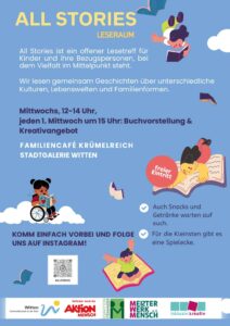 In unserem Projekt inklusiv:kreativ ist Anni unter anderem für den inklusiven Spieletreff zuständig. Hier können Eltern mit ihren Kleinkindern Spiel und Austausch finden. Der inklusive Spieletreff findet immer mittwochs von 9:30-11 Uhr statt. Aktuelle Infos zu den einzelnen Terminen findest du in unserem Kalender: www.kruemelreich.de/events/.
